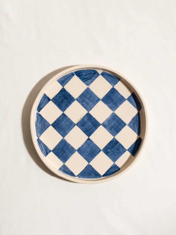 PLATO DAMERO AZUL - PINTADO A MANO